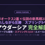 「大胆さ」を意味する名を持つ黒鹿毛は、3戦でまだ本当の姿を見せていない。本馬場での大暴れも、ルメールが語る「頭の若さ」も、全て「落ち着きが出た日」への布石だ。スプリングS・中山芝1800m──母リリーノーブルが駆けたクラシックへの道を、アウダーシアが初めて「大胆に」走り出す。