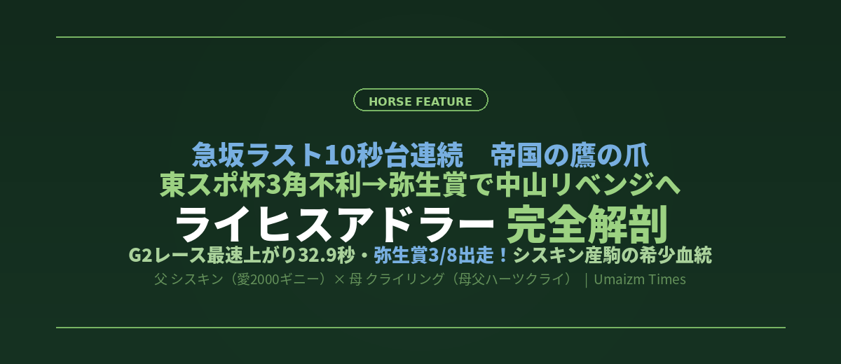 【ライヒスアドラー特集】血統・全戦績・弥生賞展望を徹底解説|中山急坂ラスト10秒台連続の衝撃とシスキン産駒の希少血統を完全解剖